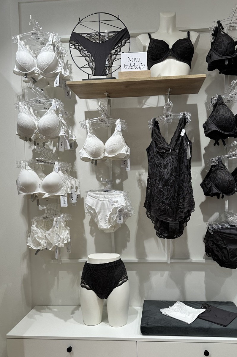 U fokusu su setovi od finih čipki u bogatim jesenskim tonovima koji podižu klasične krojeve na novu razinu glamura. Za ljubiteljice minimalističkog pristupa tu su glatki modeli u neutralnim nijansama bež, sive i crne, idealni za poslovne kombinacije i svakodnevno nošenje. Posebnu pažnju privukla je linija korzeta, bodyja i slip haljina/spavaćica koje se ove sezone nose i kao dio večernjeg outfita, u spoju s blejzerom ili kožnom jaknom. Lisca jasno prati trenutačni trend lingerie-as-outerwear, ali ga interpretira na rafiniran i nosiv način.